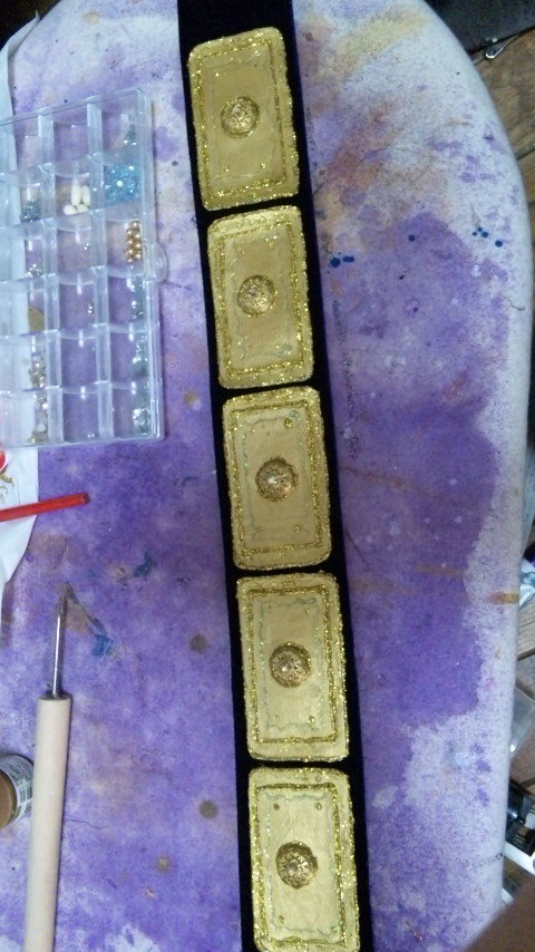 んでベルトの素材の所にぺたぺたはっつけます。