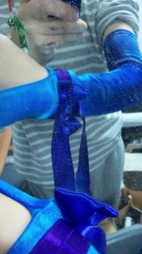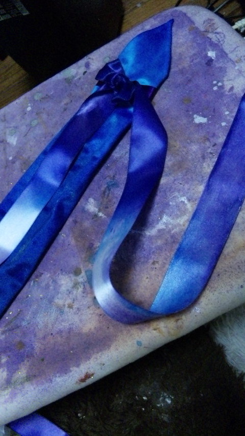 ライン用に用意していたサテンリボン(というか3司馬で使ったものを染めたもの)を流用して、
