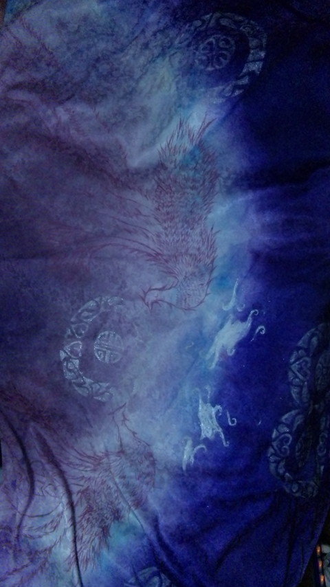スカートの型紙で適当に切ります。その後染めます。